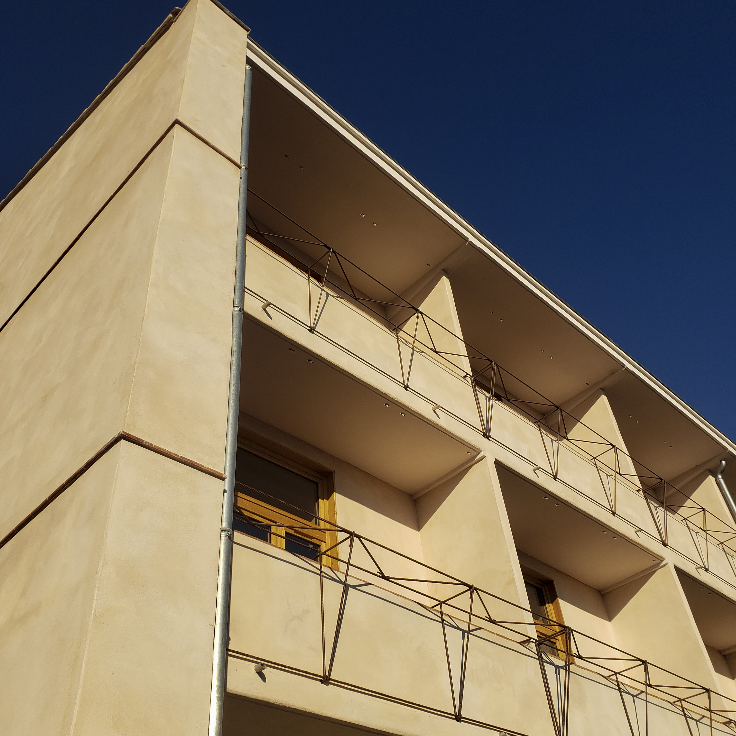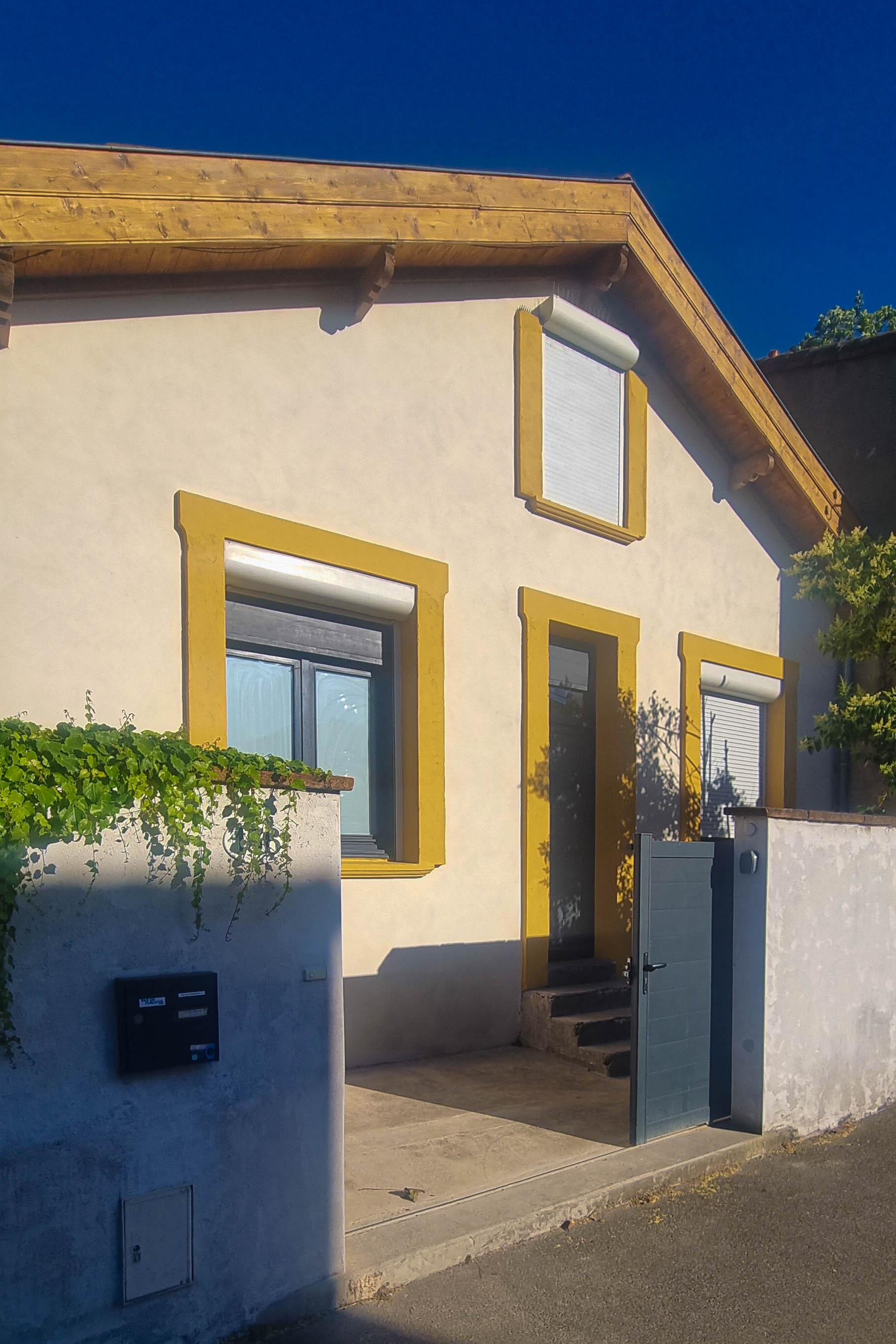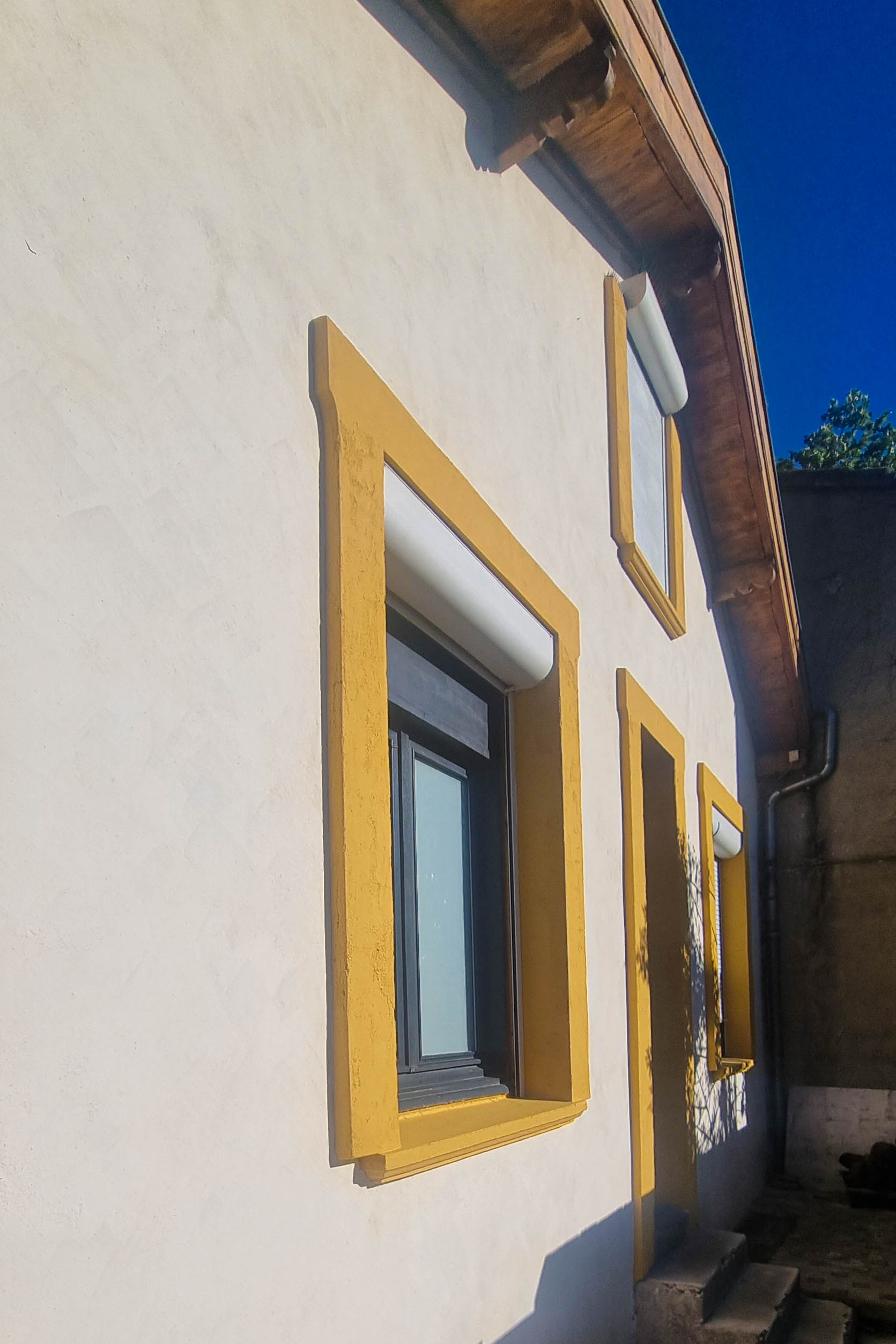Enduits et badigeons à la chaux vive. Peintures minérales. Protection des parties bois. Maison particulière années 30.