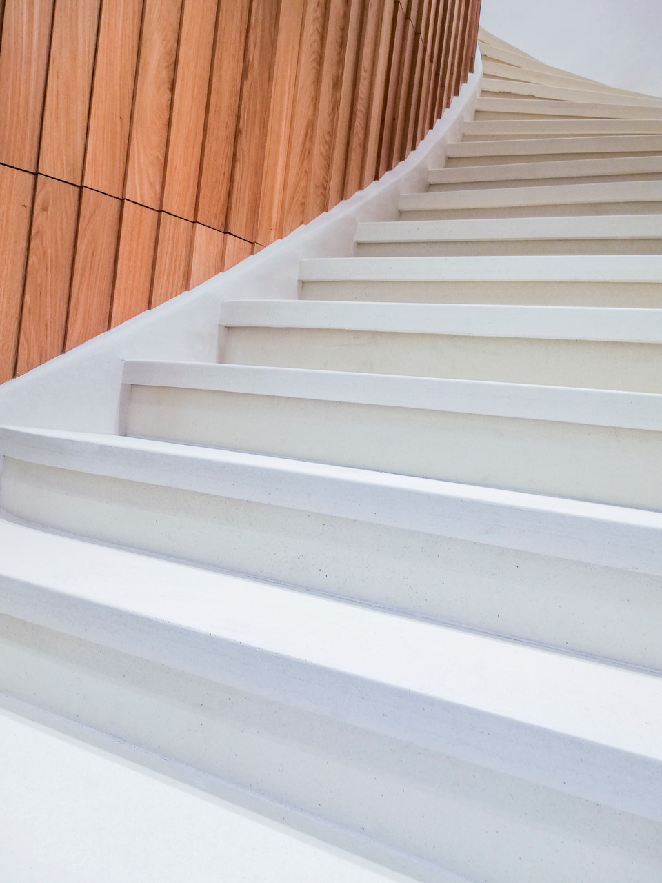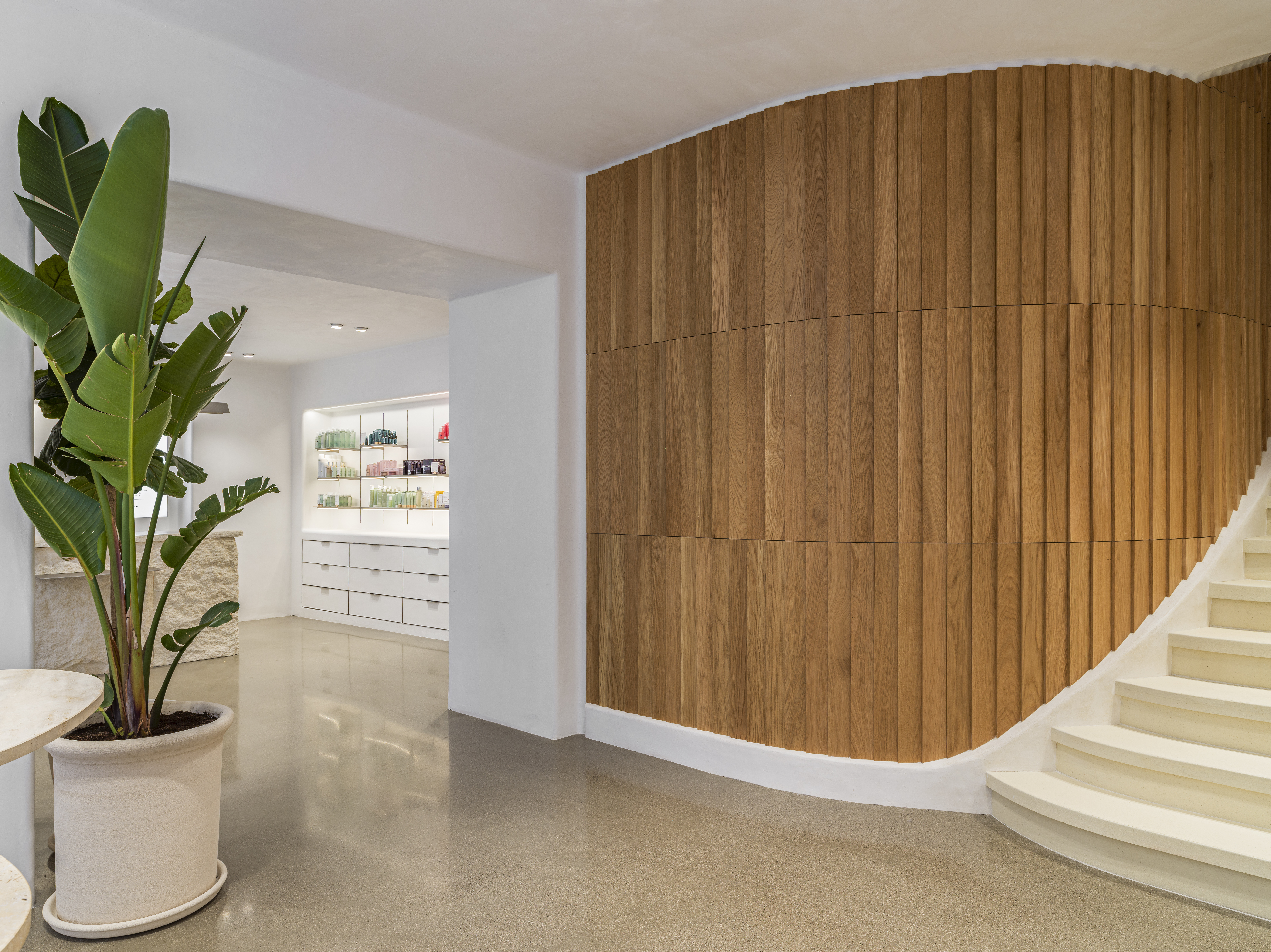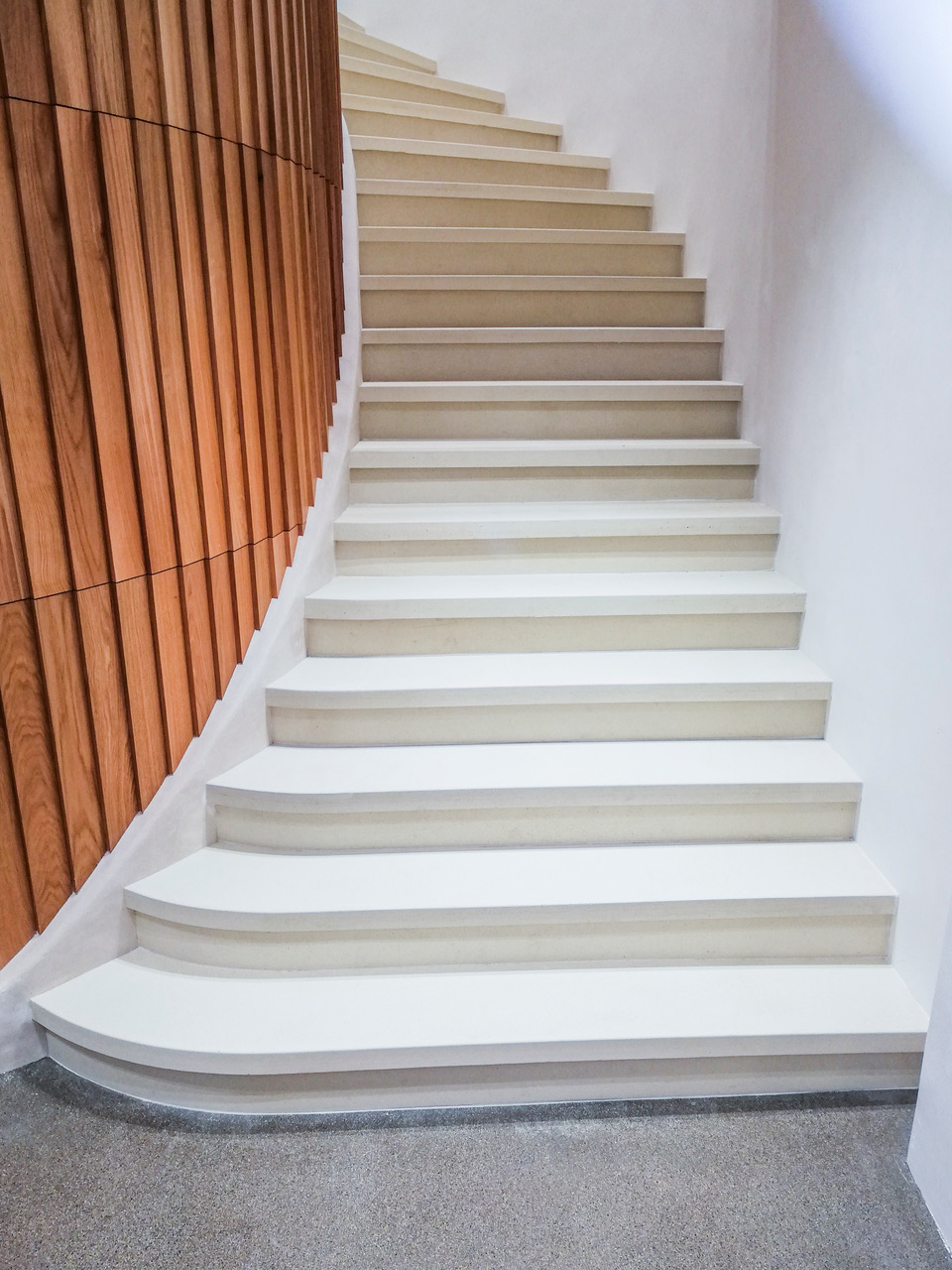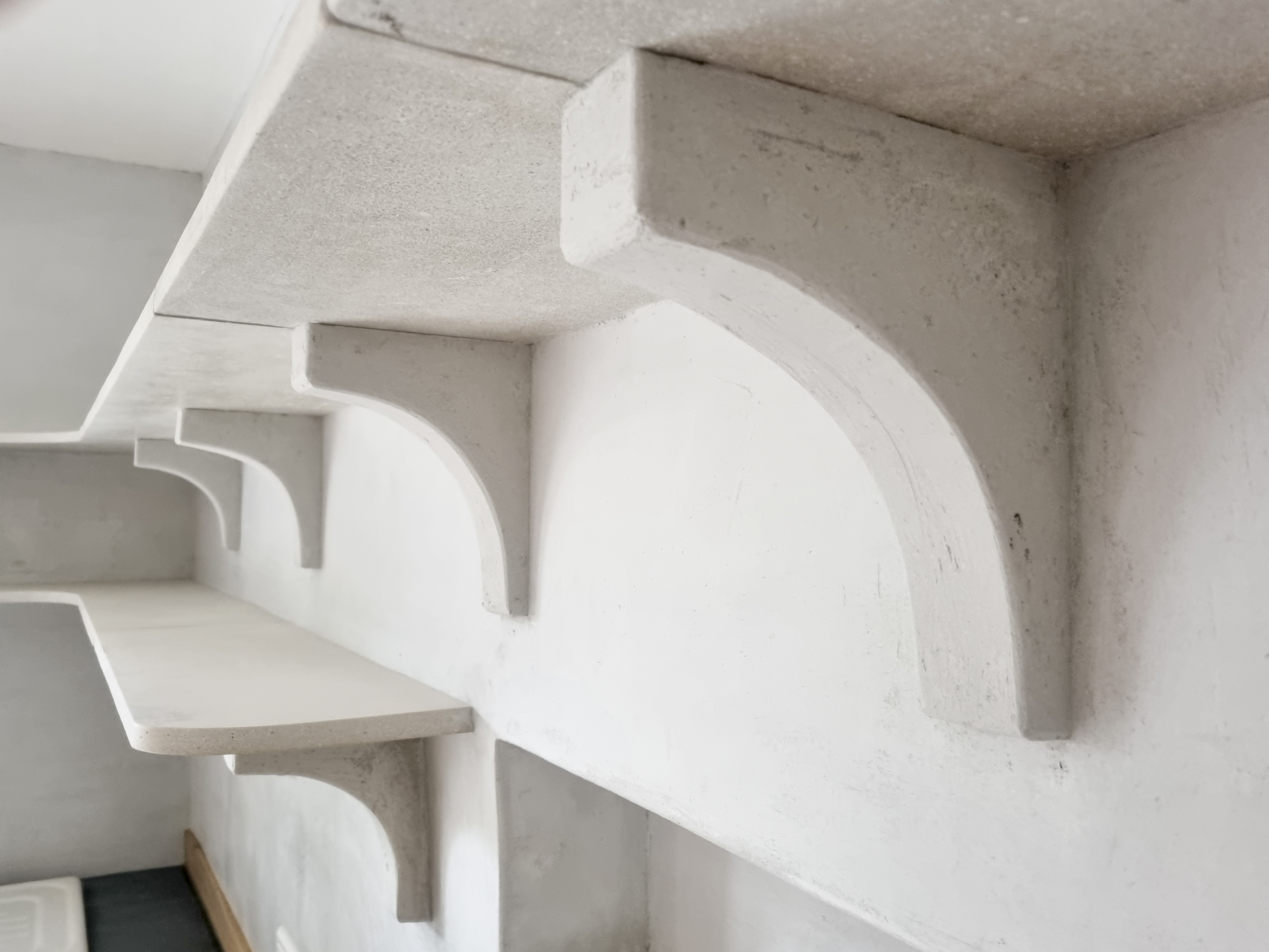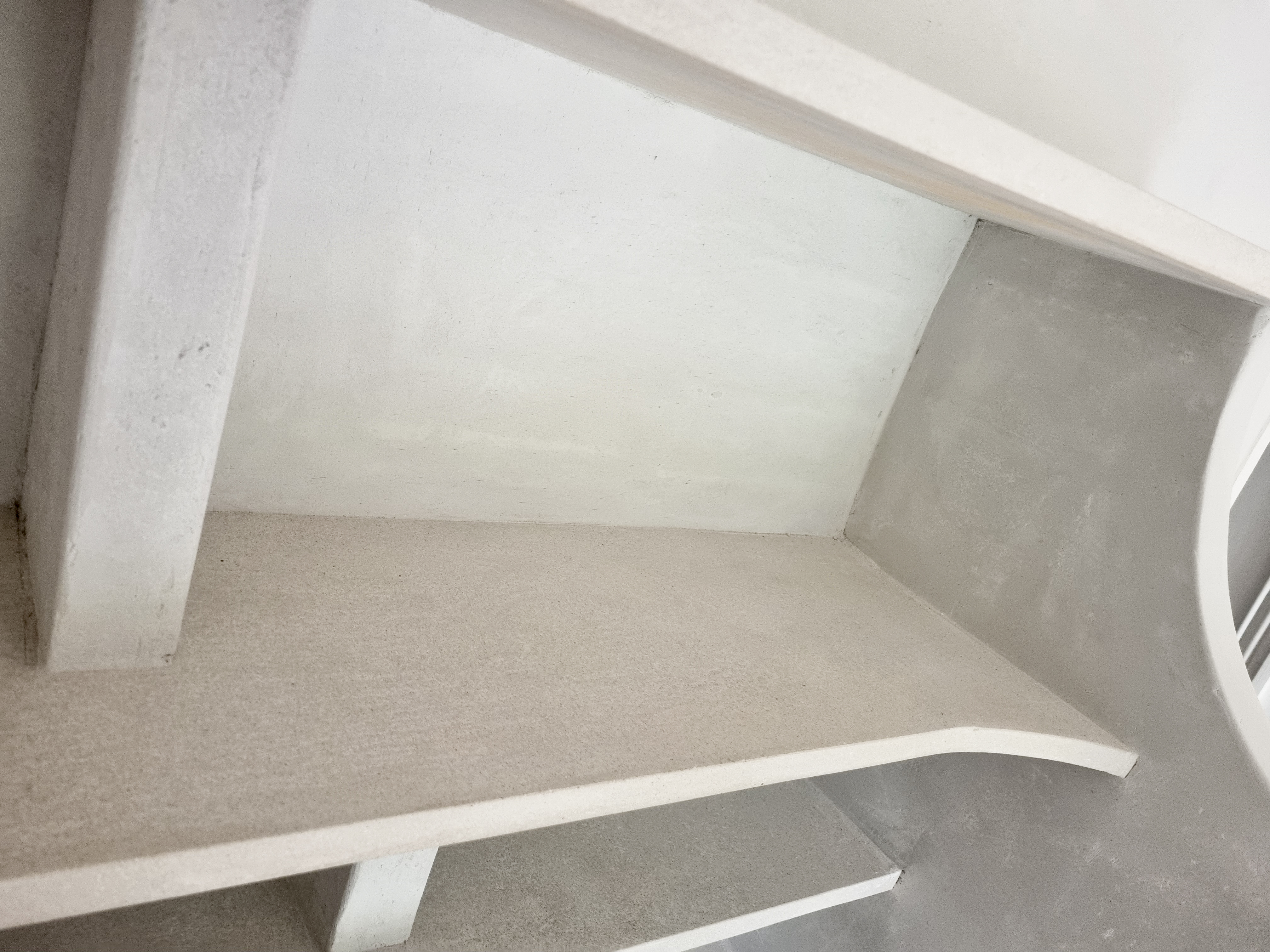 Construction d’un escalier sur voûte sarrasine : 23 marches en micro-béton brut entourées de stucs à la chaux pour le Spa Caudalie de Aix.