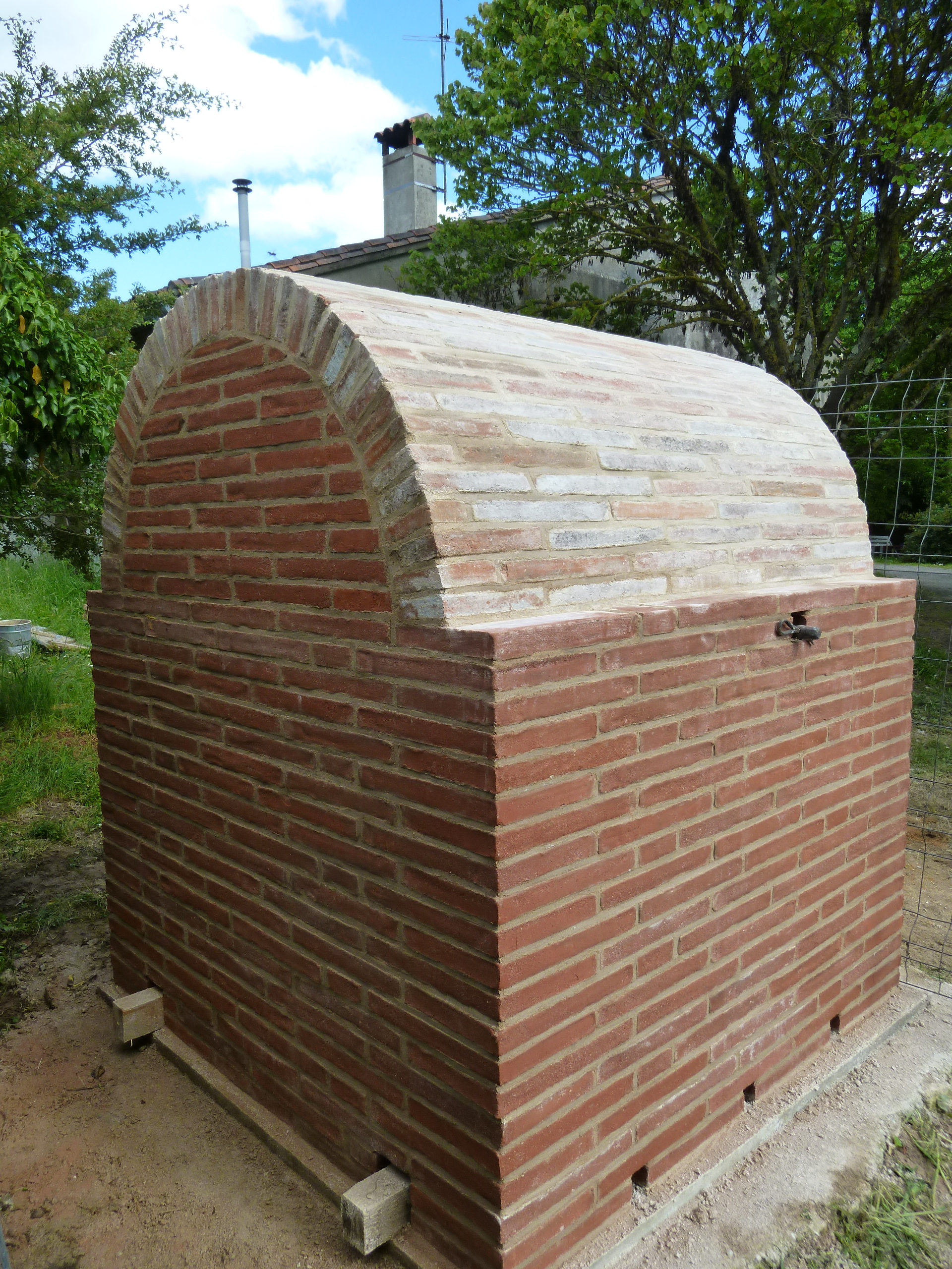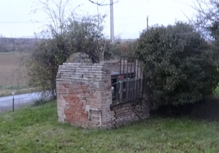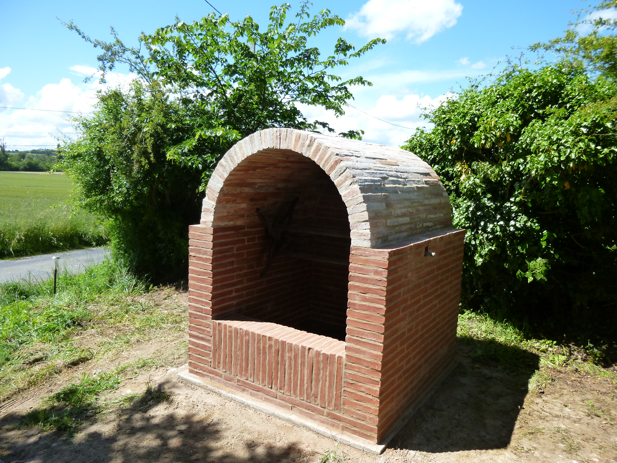 Reconstruction en briques foraines d’une guérite de puits sur fondations cyclopéennes.
