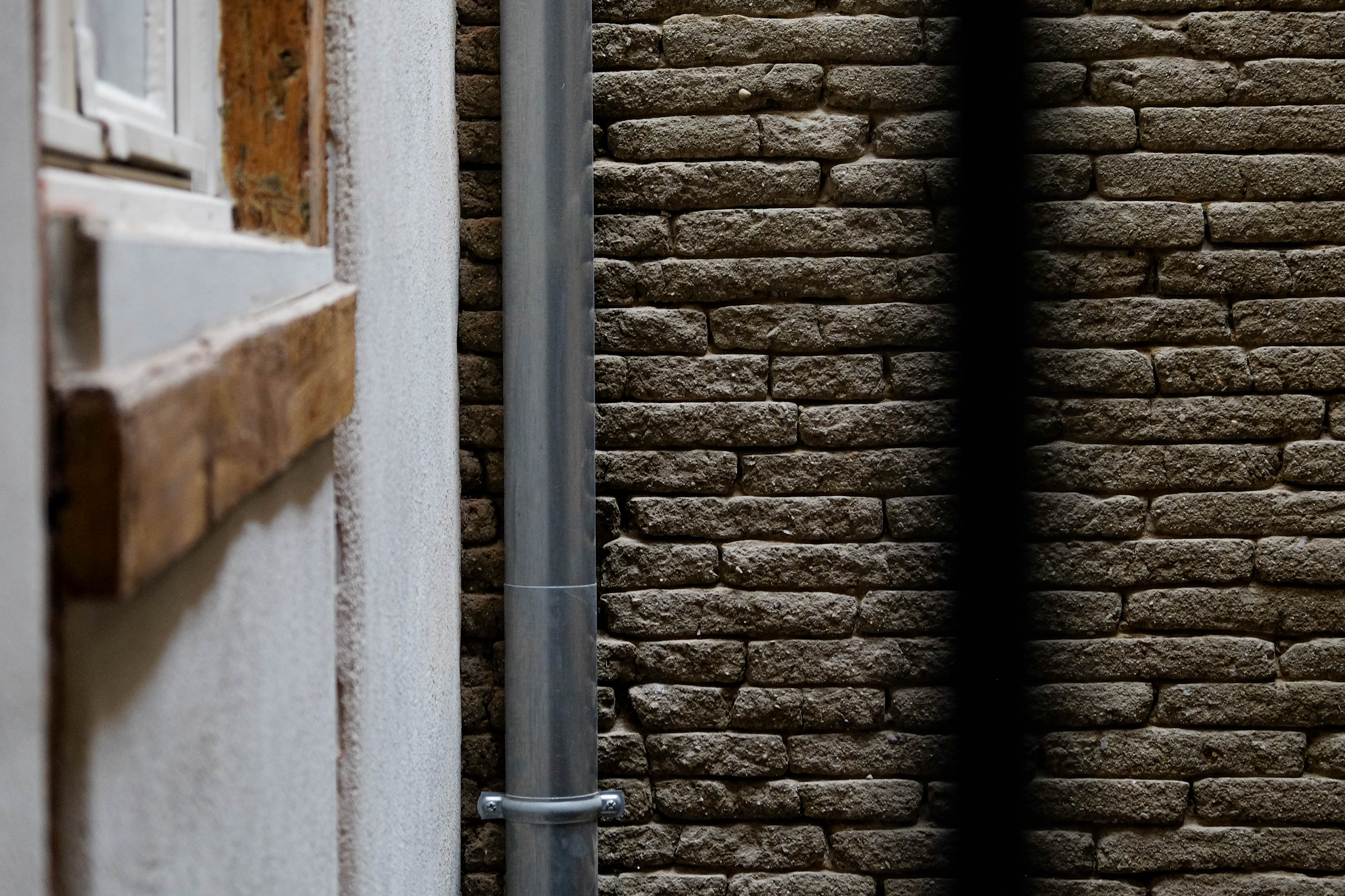 Réfection des enduits plâtre historiques pour un pan-de-bois – Réfection des briques de terre crue.