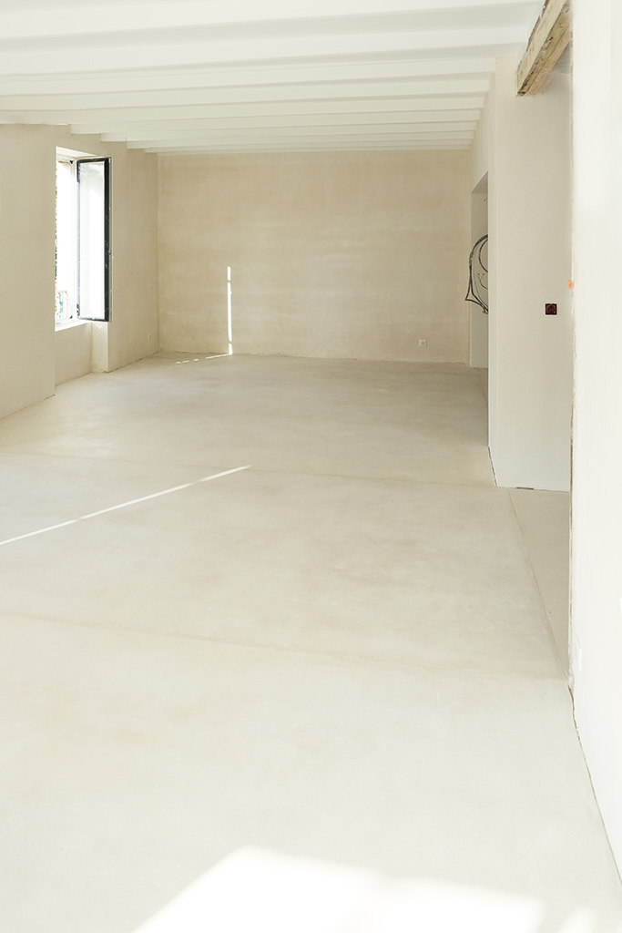 Le plâtre à plancher est une formulation de plâtre naturel haute dureté et de chaux aérienne. Pour des sols minéraux écologiques intemporels ainsi que pour du mobilier. Il est poncé, minéralisé et huilé. Les pigments ainsi que les agrégats décoratifs sont prototypés dans notre atelier.