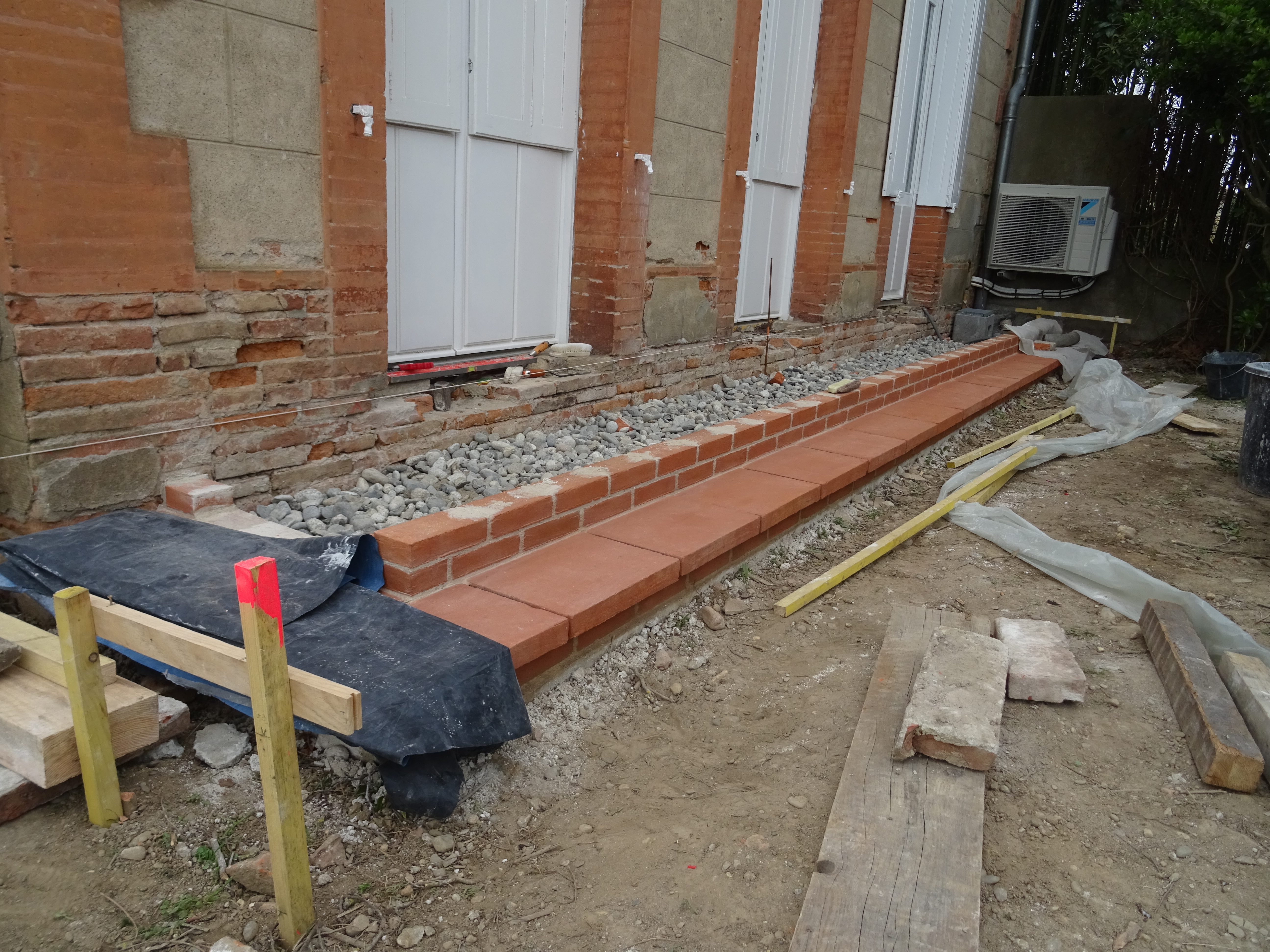 Reconstruction d’une terrasse en brique foraine.